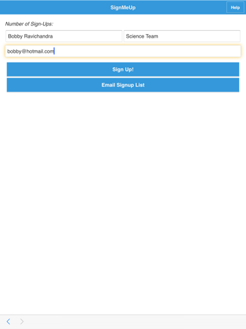Welcome to Sign Me Up, a simple mobile sign up sheet which automatically stores the sign ups for your event or organization and e- mails it to you, already formatted to be easily pasted into a google group.