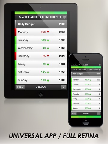 A Universal app with full retina support, for the most beautiful user experience. Great for anyone looking for a simple tool to help manage their diet.