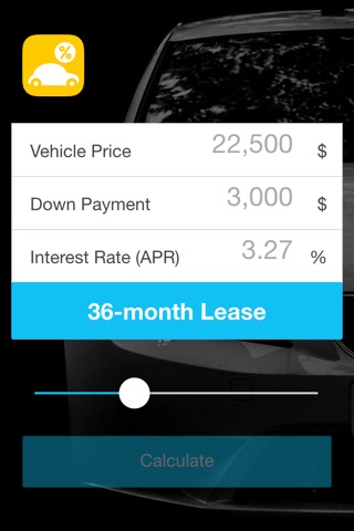 A simple and easy way to calculate your monthly auto loan payments. Just enter vehicle price, down payment amount, interest rate (APR) then select term in months and tap on the “Calculate” button to get the result. You can also adjust down payment amount, term in months, and interest rate on the result page to change the result instantly.