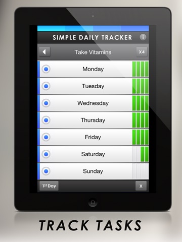 • Simple Daily Tracker adheres to a minimalist design aesthetic that delivers only the essentials, allowing the user to concentrate on whats most important, and thats reaching goals and completing tasks.