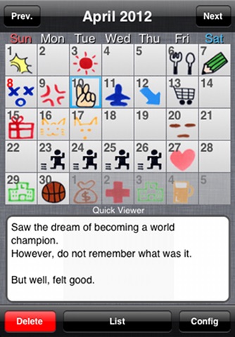 - "Calendar Screen" and "List Screen" are easy to check the Dream Diary.