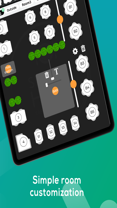 You’re able to customize your restaurant rooms to the exact. Up to five rooms available to design. Adjust how many seats are available at each table.