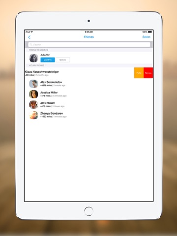 3. Displays accepted friends on the map and in the list