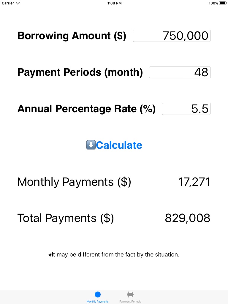 - This app is a loan calculator that can easily calculate the monthly and the total repayment amount.