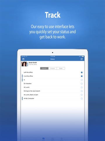 Simple In/Out is the easiest to use in/out board in the App Store. It is great for offices with people always on the go. Our easy to use interface lets you quickly set your status and get back to work. You can also configure your phone to update your status automatically based on your devices location.