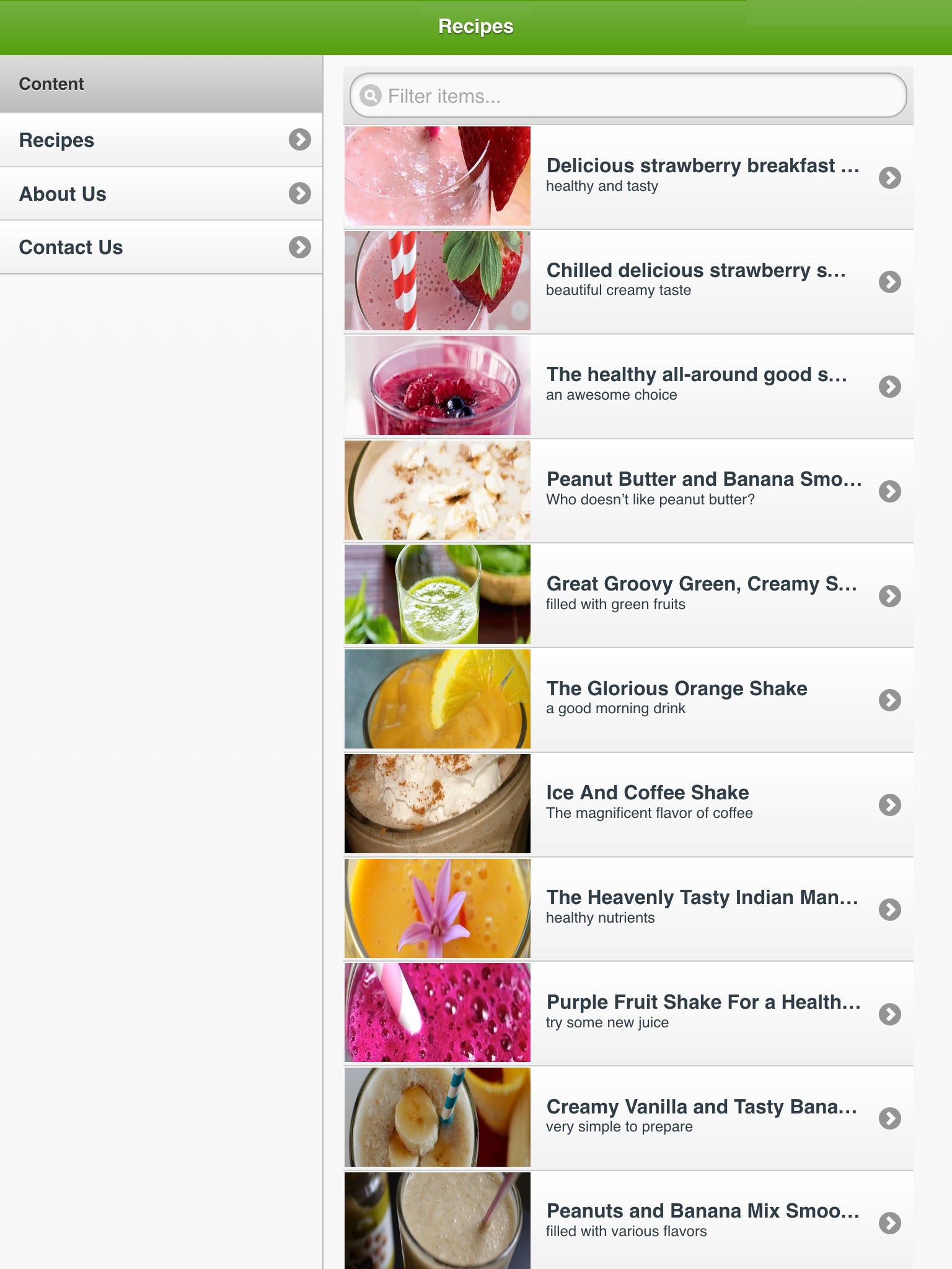 The great thing of this app is that this apps work offline. That means you don’t have to access internet or turn on data pack to get access to these mouth watering recipes. 50 smoothie recipes have been provided that are most popular and besides different flavors, this app also contains fruit smoothie recipes.