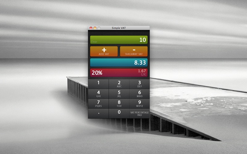 Calculate VAT using a Simple VAT system. Either add or takeaway vat with a click of a button.