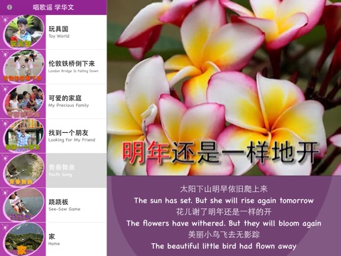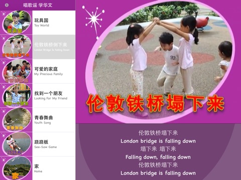Sing to Learn Chinese helps your child to learn Chinese words and phrases through many catchy Chinese children rhymes! Download the app and enjoy it on your iPhone or iPad!
