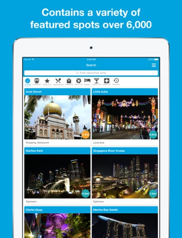 Pilot contains a variety of content. You can freely choose from over 7,000 destinations including restaurants, tourist attractions, shopping malls, and bars. It includes pictures, comments, prices, and business hours for spots that are particularly popular among tourists. You can thoroughly enjoy your trip.