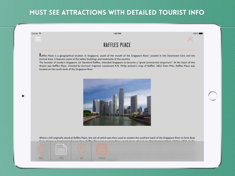 Tourist info for must see attractions such as Downtown Core, Raffles Place, Parliament House, Supreme Court of Singapore, City Hall, Shenton Way, Sri Mariamman Temple, Masjid Sultan, Bukit Timah Nature Reserve, Changi Museum, among others.
