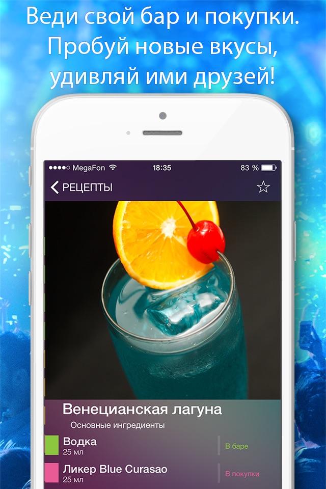 Отличное приложение, очень давно о таком мечтала!Удобное и красивое!Идеально для коктейльной вечеринки!:)Качайте смело)