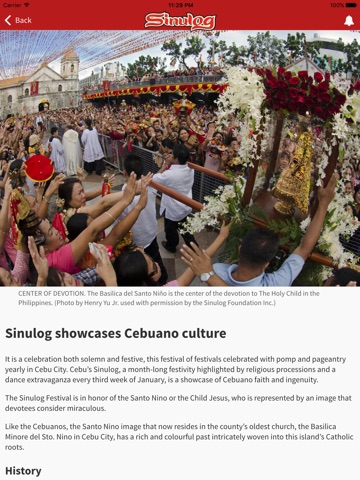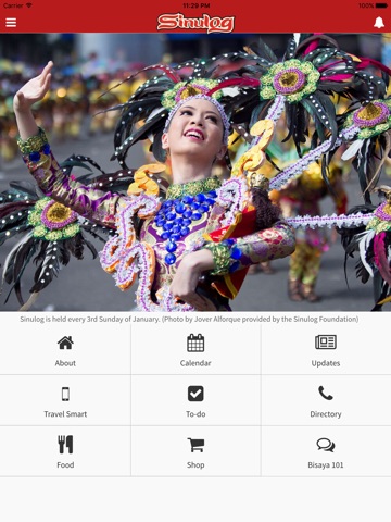Sinulog Guide is a collaboration among the Sinulog Foundation, Inc., Smart Communications, Inc. and InnoPub with the support of the Department of Tourism - Central Visayas, Cebu City Government, Cebu Pacific Air, Marco Polo Plaza Cebu, The Islands Group.