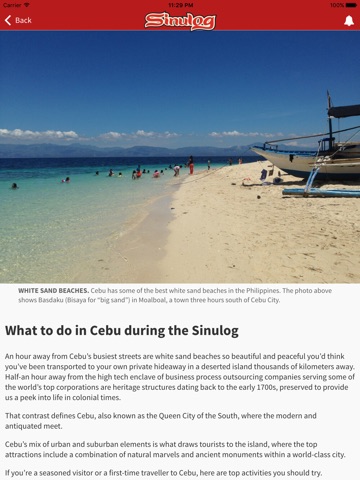 Sinulog Guide also contains a list of things to do in Cebu including taking heritage tours and sampling local cuisine.