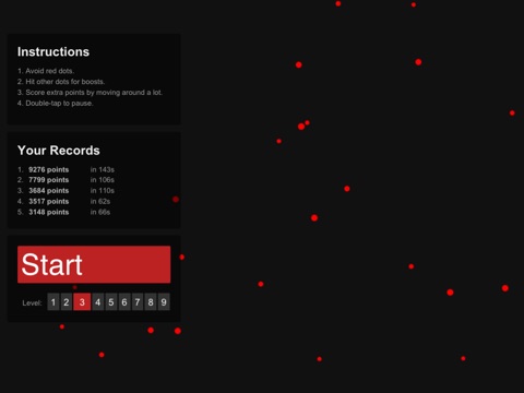 Sinuous is an addictive reflex-based game where your objective is to avoid colliding with red dots through quick reaction. Keep an eye our for the assortment of boosts as they are the only thing that will aid you in this epic battle against the evil red dots.