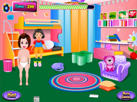 In this game you have to take care of the little sister called Tornie . She made an incredible mess in her room and spread things all over, and you have to help to clean up the room. She will be very happy when you will find an object, and will be disappointed and will cry when you do not know where to put items. Sit back books, paintings drawings, ball, bear, bag, and her sister shoes . Tornie is preparing for sleep, but has a few things to do before . You need to help her take a warm bath, towel to wipe well , and then dress nightgown , but before they have to brush their teeth to have fresh breath . After this relaxing bath help her go to her room. Once in her room , you have to dress clothes and giving her purse. Put the accessories likes Tornie, prefer glasses, flower in hair, those new shoes, then you get to the park to play with Tornie. Little girl wants to eat popcorn, wants to play with balloons and then shes craving ice cream and you ll have to serve hers favorite ice cream , so she is happy and cheerful. Tornie took her favorite colored ball in park, ball received it for her birthday gift, and wants to play with her bigger sister. After she finished eating, and tired of sitting on the bench, she suggested her sister to have her on swing. Finally the two sisters are very happy that they have spent their free time together in a very pleasant and relaxing mode.