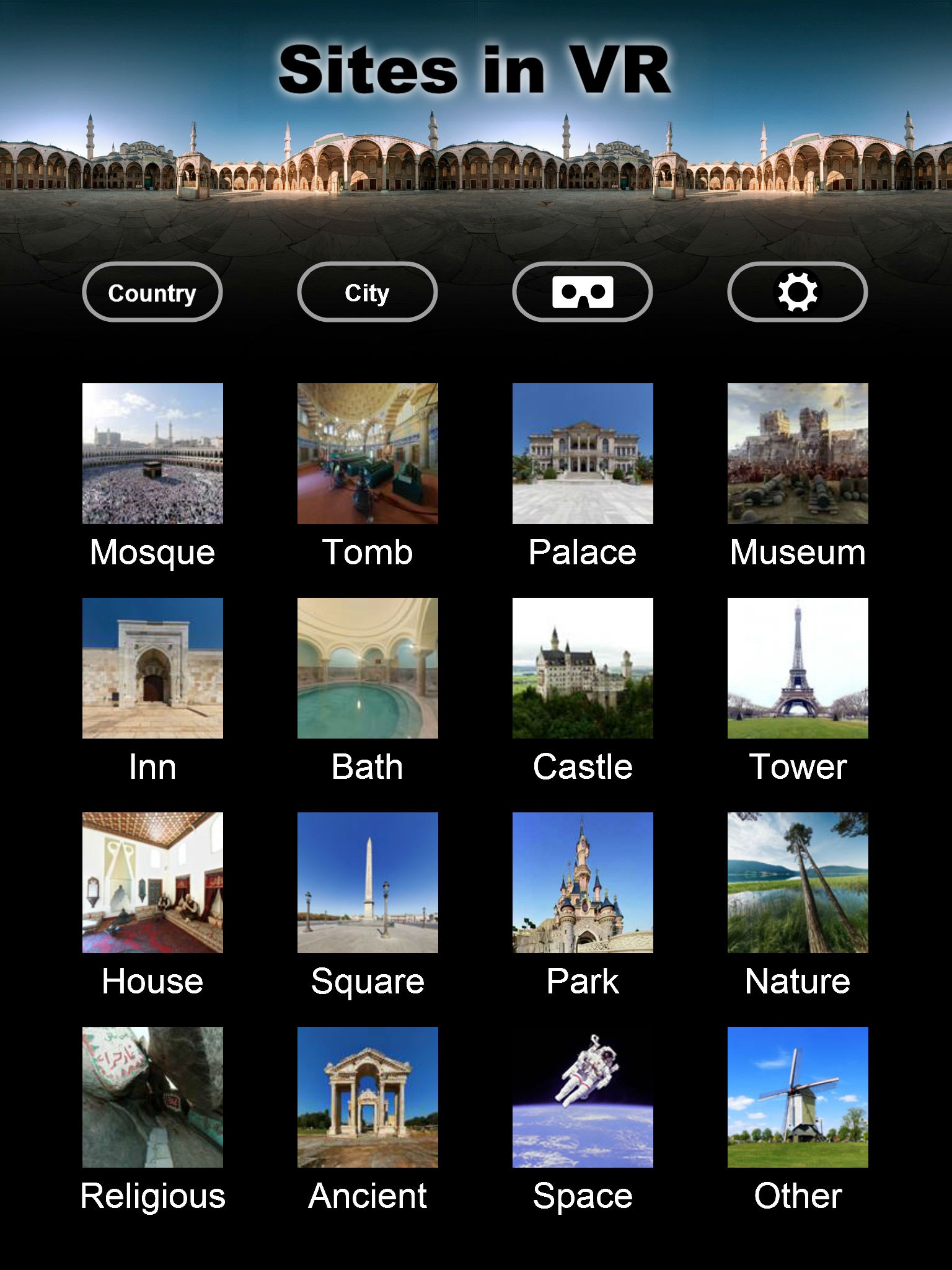Virtual tours (also for VR goggles) of landmarks from Turkey, Egypt, Saudi Arabia, Syria, Morocco, Kuwait, Yemen, Macedonia, Holland, Belgium and France. Examine the marvels of Islamic architecture, visit mosques, tombs, palaces of sultans, museums, inns, baths, castles, towers, old houses, squares, parks, nature, religious sites, ancient cities, space and other places with more than a thousand 360 degree panoramic images in high quality. Go up the Eiffel tower, go inside the Egyptian Pyramids and even visit Mars! You will feel as if you are there...