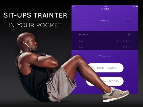 Take advantage of the best Workout app that counts the number of sit-ups you do, and calculates the calories you lose during your training sessions.