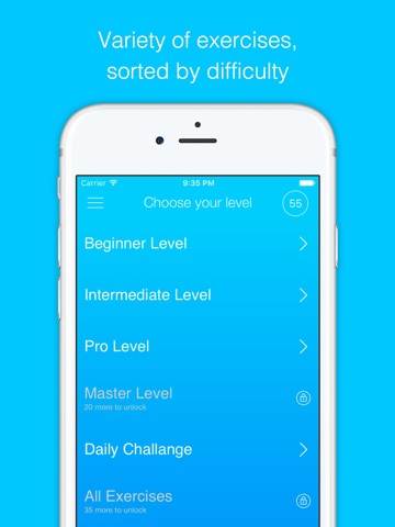 - Wide range of exercises for every experience level, which unlock as you progress in your training