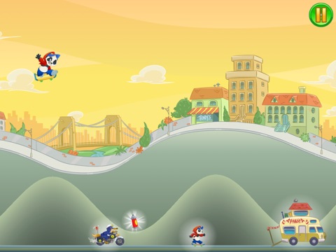 Skating Panda has been naughty! Help him skate away from the big bad cop, while making cool tricks! There are 12 awesome levels, where escaping through the sloping hills gets harder every time…