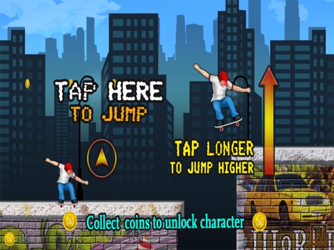 Controls are simple, tap the screen to jump, a small tap for a small jump, the longer you tap, the higher youll go, the game will get faster so get your finger ready to go as far as you can.