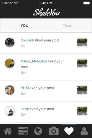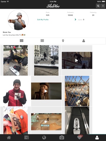 The SkateYou App is integrating the most sophisticated modern tools including GPS with navigation system that guides you as you wish to skate spots, parks and shops all over the world, Social Media, Camera, Online Skate Contests and is daily updated. It allows the user to create his/her private skate profile, featuring personal high quality videos or photos, trace skating spots all over the world and the amazing opportunity to win high quality and limited edition gear.
