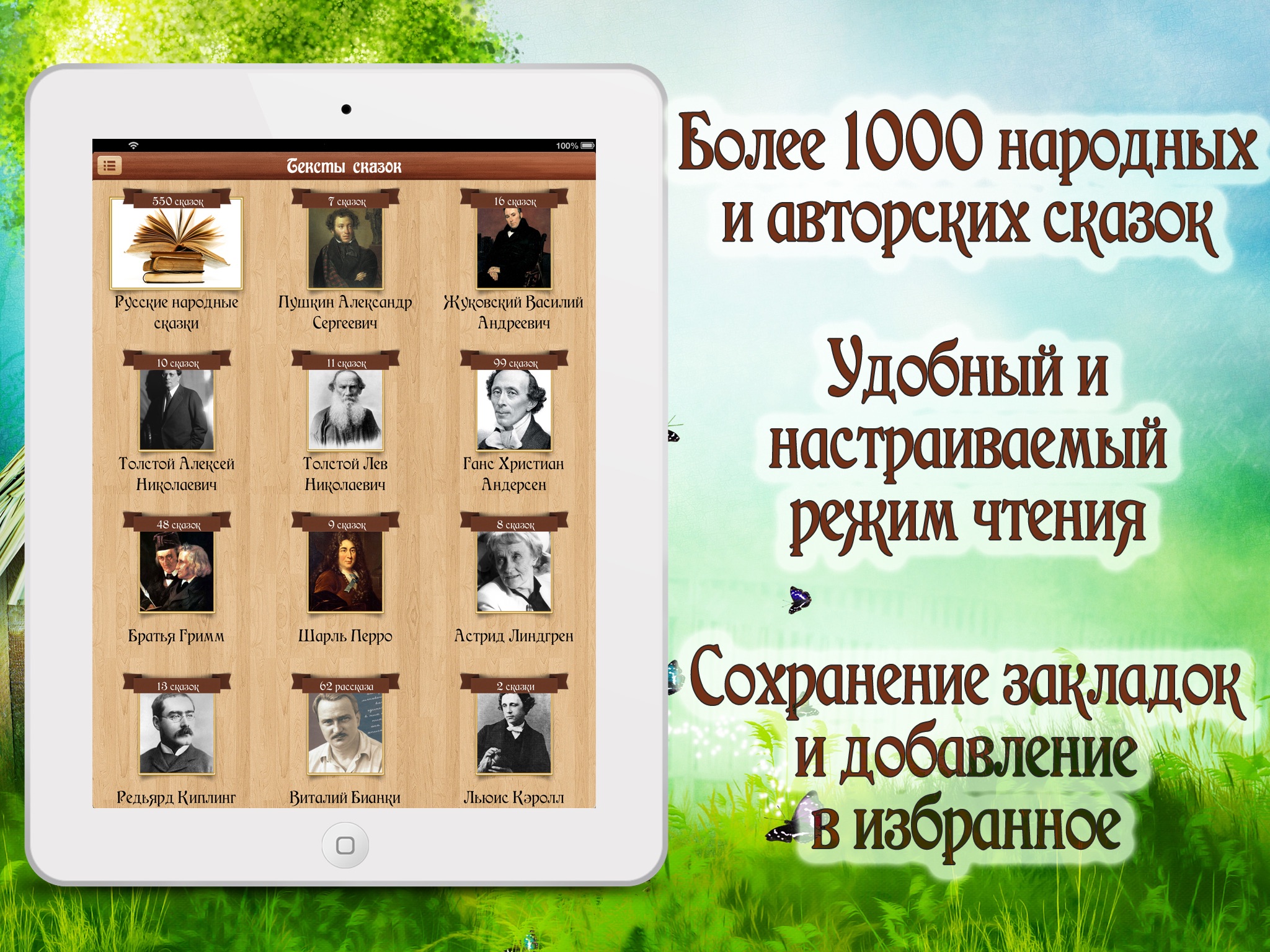 Более 1000 самых популярных авторских и народных сказок. Андерсен, Пушкин, Братья Гримм, Русские Народные Сказки, Мифы Древней Греции и многое другое.