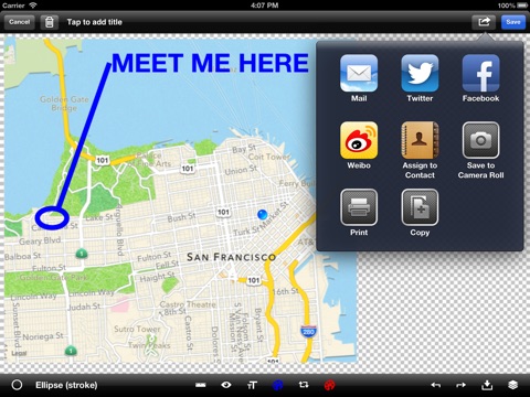 This app enables you to create cool drawings, annotate maps and draw on your photos!