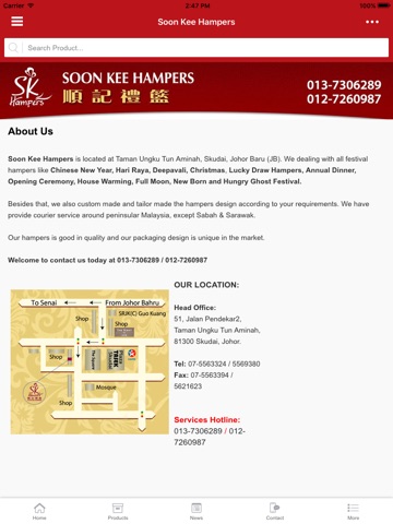 Soon Kee Hampers is located at Taman Ungku Tun Aminah, Skudai, Johor Baru (JB). We dealing with all festival hampers like Chinese New Year, Hari Raya, Deepavali, Christmas, Lucky Draw Hampers, Annual Dinner, Opening Ceremony, House Warming, Full Moon, New Born and Hungry Ghost Festival.