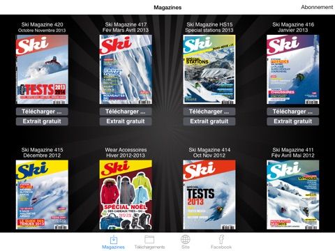 le 14 décembre : achat du magazine 408 mais téléchargement interminable ! après 24h, impossible de lire le magazine acheté ! Enfin, téléchargement possible le 17 décembre. Mais la lecture nest pas aisée, après un zoom la page est bloquée ou revient à la taille normal (minuscule) ... Dommage car "ski magazine" est un bon mag encore faut il pouvoir le lire correctement.