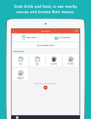 This is a new app on the block so I will be gentle. As with many apps lately, the signup button is not clearly marked. Yes it has the words "sign up", but its the same color as the background so it blends in. New people should be drawn to the sign up button. Existing users should already be logged. Users that got logged out know they have to log in so they will actively look for the login button. New users should flow easily into the funnel. When I tap for food and then pick a venue, I am shown coffee. Maybe the venue doesnt offer food, but this is confusing. Then it appears there is no way to go back because the art assets for the button (and other buttons) didnt load. If there is no back button I have to go through the whole process of putting a coffee item in my order before I can go back and remove it. But then there is no remove button! My plea to the marketing team, UX, and project management is this: please prioritise usability over fancy graphics and animations. They add to the app when everything else works smoothly. But when it doesnt, the fancy stuff looks amateur. A custom spinner doesnt make my coffee come out any faster.