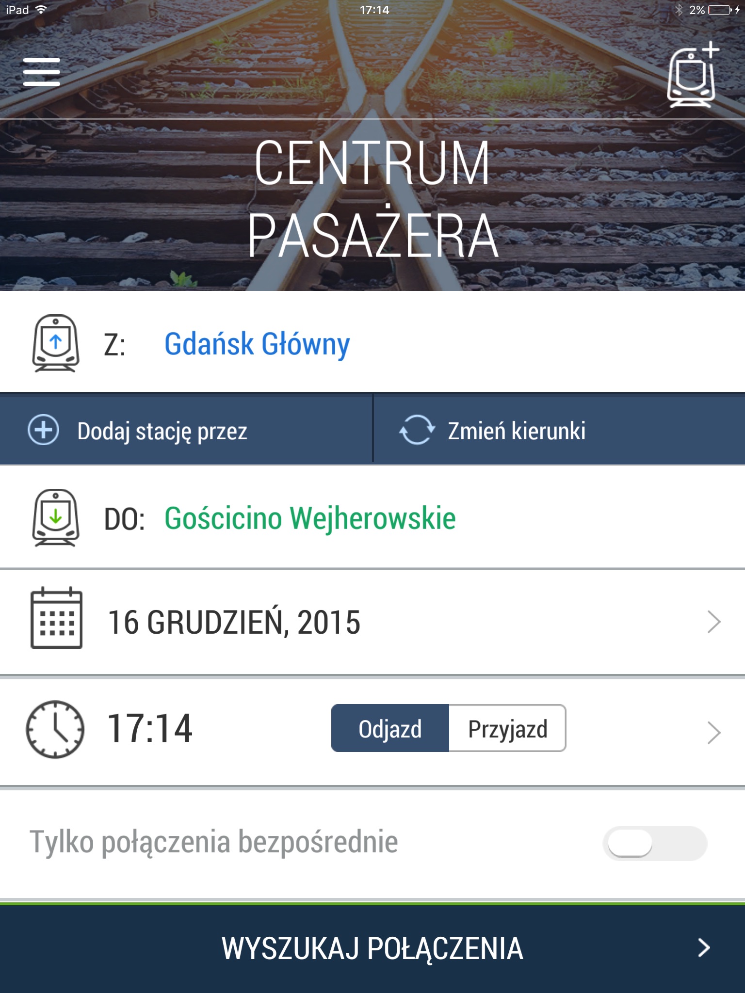 Brak połączeń dla Pomorskiej Kolei Metropolitalnej.