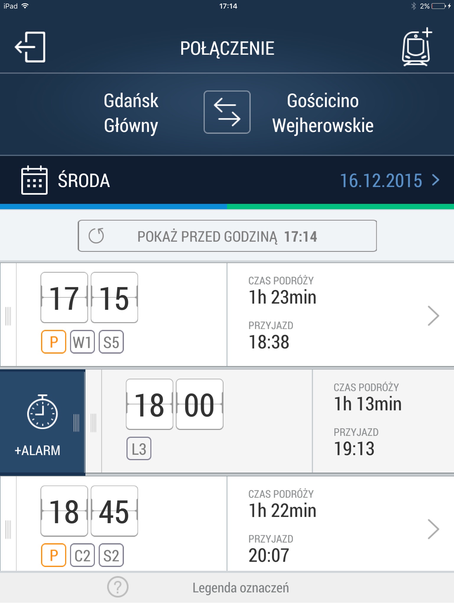 Przy sprawdzaniu godziny odjazdu nie widać aktualnej godziny. Nie wiadomo Za ile dany pociąg jest