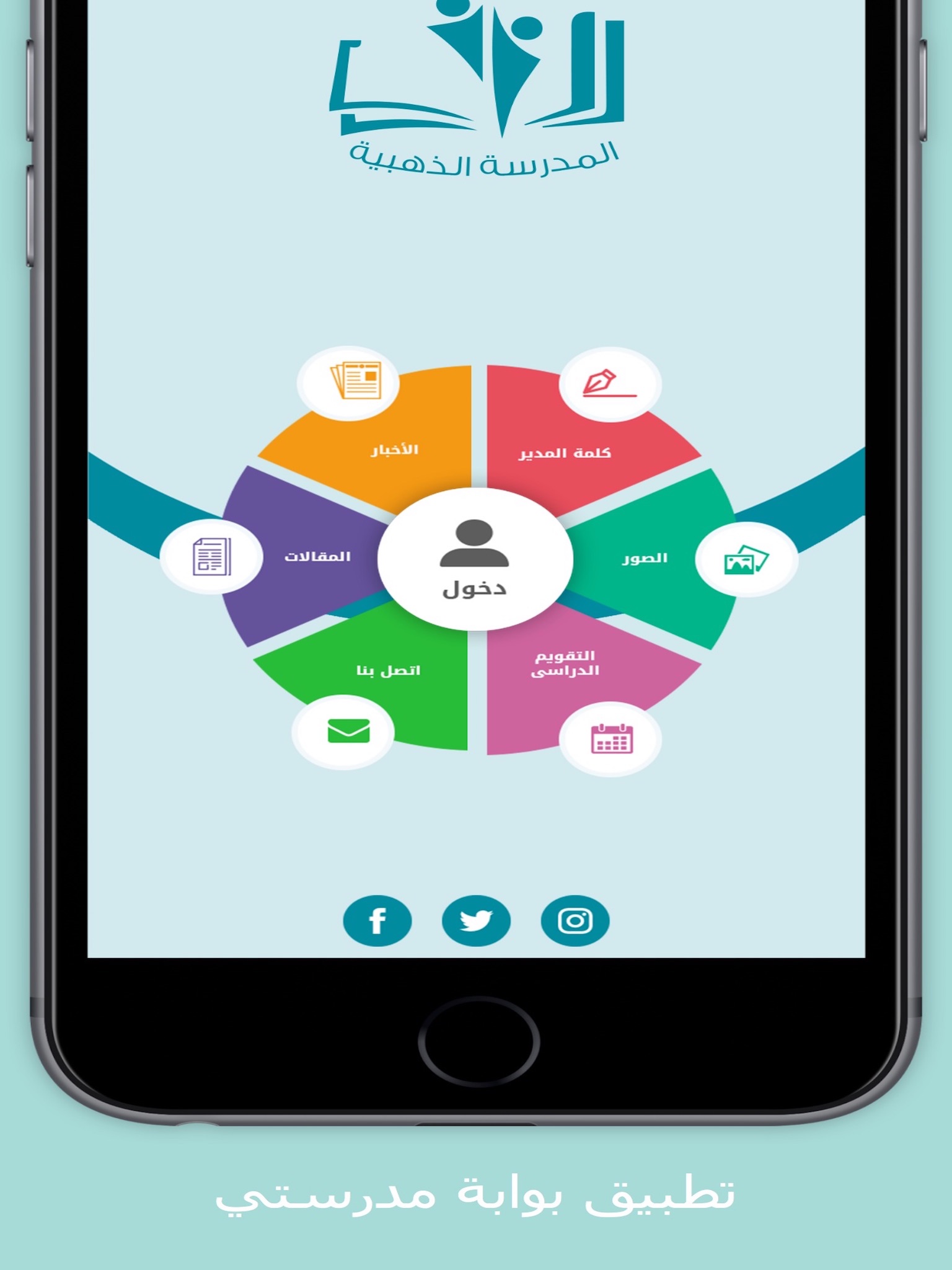 - الدخول إلى التطبيق للمعلم والطالب وولي الأمر والطاقم الإداري للمدرسة.