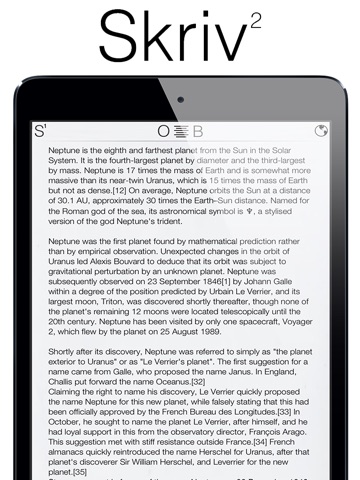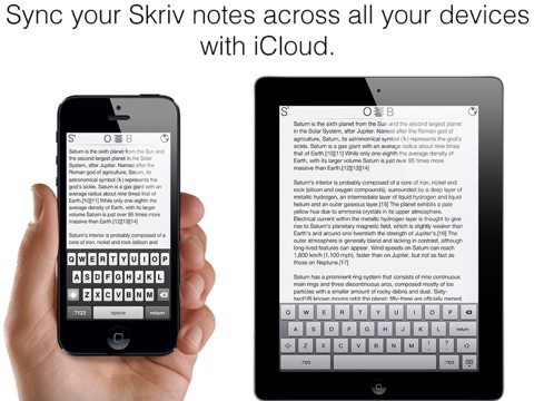 Skriv is a simple and intuitive word processing app packed with plenty of great features to help get your writing done. With iCloud, your notes are synced across all your devices. With its built in web browser, you can instantly search the web for information regarding your assignment or note. When you are all done you can instantly share your document either as an email, an attachment, by uploading it to Dropbox, Box or Evernote, sending it as a text, printing it via air print or just sharing it with your friends. Check out some of detailed features below!