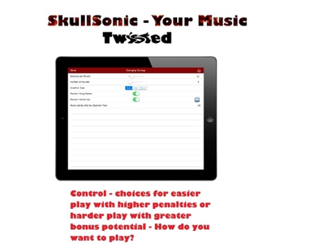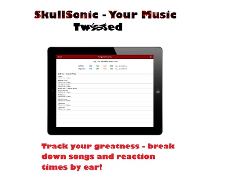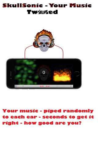 Your music library with a serious twist. If you think you know your tunes just wait until SkullSonic randomly pipes different songs into each ear! it doesnt stop there though, with the countdown timer on you need to correctly pick out each song before time runs out. Not enough challenge? How about if your songs are piped to you at different playback speeds? More? How about a random switch-up where what you hear on one side of your skull you need to identify on the opposite list! Track your reaction times by ear and earn penalties and bonuses dynamically based on difficulty.