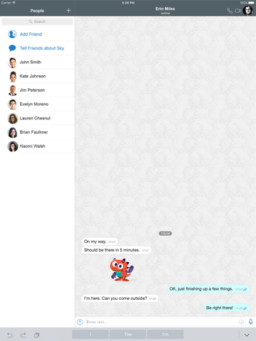 Instantly reach the people in your life—for free. Sky is just like texting, but you dont have to pay for every message (it works with your data plan).