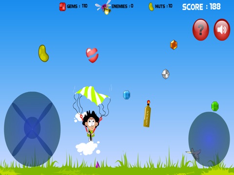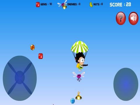 The sky diving ninja jumped and flying on sky using his parachute, he has a gun in hand which works with nuts. You have to collect nuts which you can use as bullet and kill birds and insects that can harm your parachute.