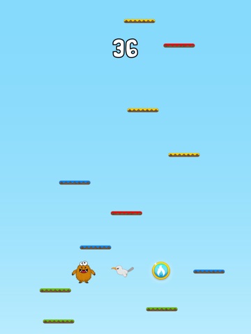 Help Krunchi reach the sky! Jump on the floating platforms and avoid the birds and other obstacles! How high can you jump?
