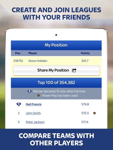 Track the performance of your selected players in the live Match Centre and score double points during your selected Power Play period.