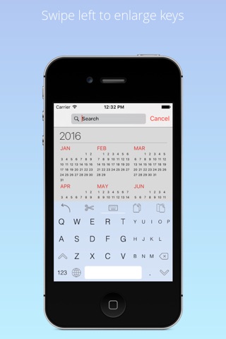 shortcuts for effective typing and enlarging keys with left and right swipes respectively.