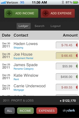 Enhancing our idea of efficient paperless offices, Skyclerk adds a mobile app to its already robust web-based accounting software. This app allows you to keep track of your finances on the go. Dont wait to get back to your desk to record your income or expenses. Record your ledger entries in real-time.