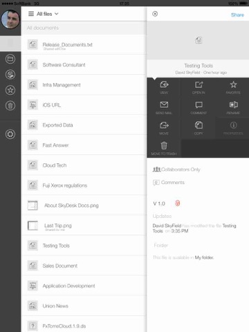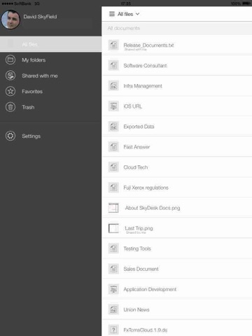 SkyDesk Docs for mobile is an application of Fuji Xeroxs cloud service, SkyDesk. It offers the essential document sharing features of Docs for web in a simple, easy-to-use interface optimized for iPhone and iPad enables you to browse through the documents in various formats that are stored in the server.