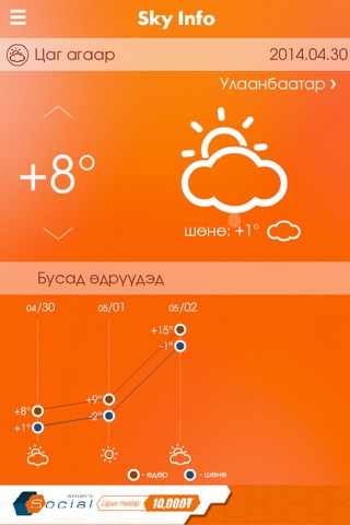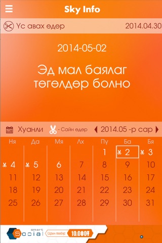 Скайтел компаниас гаргаж байгаа өдөр тутмын мэдээллийг харуулах аппликейшн, цаг агаар,ханш,үс засах өдөр,түүхийн товчоо,үзвэр үйлчилгээ,өрнө дорнын зурхай,телевизийн хөтөлбөр.