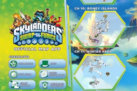 The perfect digital companion to Skylanders SWAP Force, this handy app allows gamers to track and find all the collectibles in the game! This interactive app will add another layer of excitement to your gaming experience! The Skylanders SWAP Force Official Map App provides players with expertly crafted area maps complete with icons indicating the exact location of every cool collectible. This app covers the following: