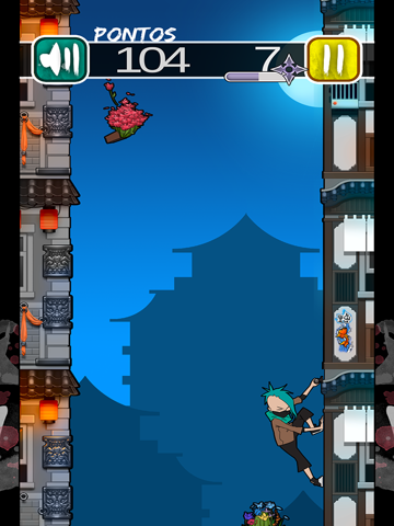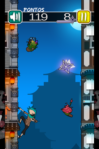The Dragon Challenge is up. Your goal is to go as high as you can jumping and throwing shurikens on your foes. The ninja clan is on your way and besides their ninjas, they will drop obstacles to block your way.