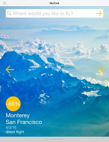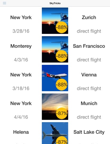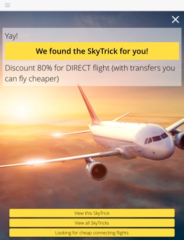 SkyTrick is an application that uses rare and less obvious methods to find cheap flights. Our techniques can save the booker up to 70% off the regular price of the ticket. We can do this by uniquely analyzing the fares of over 80 online travel agencies. We call such resulting life hacks, SkyTricks.