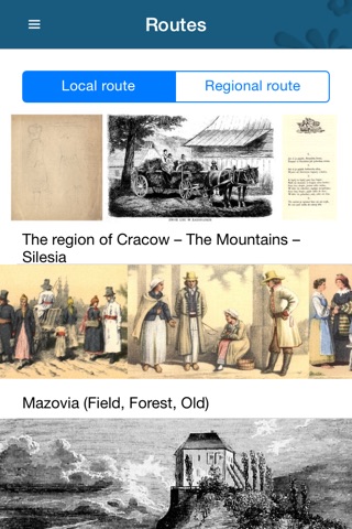Regional routes retrace the paths of Kolberg’s field research. Following his steps you will visit many places which are important for the history of Poland. In addition, the guide consists of passages from Kolberg’s materials, often, illustrated by drawings from Kolberg’s day. The subsequent parts of the guide are accompanied by music tracks of folk musicians taken from the archive of Polskie Radio and the Institute of Art of the Polish Academy of Sciences.