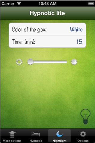 This program is designed on the principle of real physical gadget, which helps to sleep on a method of deep breathing of yoga. This device (ie, a prototype) sends a beam of light on the ceiling. Light becomes a brighter, then dimmer. The user must synchronize his breath along with this surge. Pulsation occurs once every 5 seconds. Thus, the breathing becomes deep (using yoga). With such a breath in the body stops production of cortisol (a stress hormone), and you will quickly fall asleep.