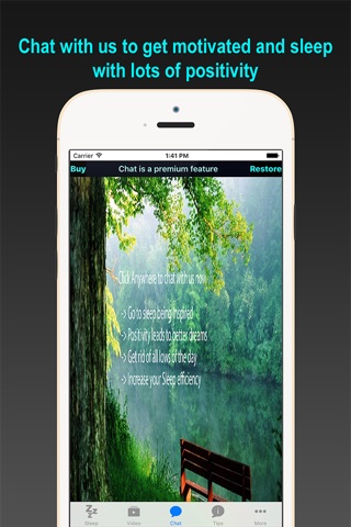 ** SleepIsle Pro has innovated a new feature called Chat- to sleep better. It’s an in-app purchase that can be used to chat with us to get motivated and inspired and have positive dreams!