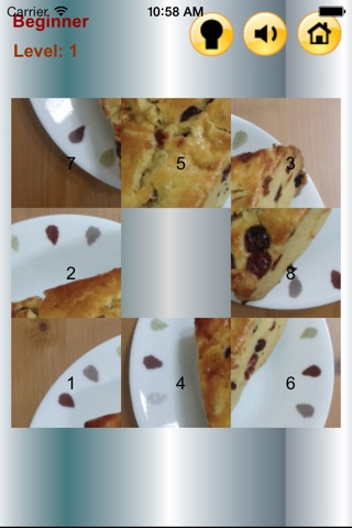 beginner difficulty is 3x3 and slide and fit puzzles into center square.
